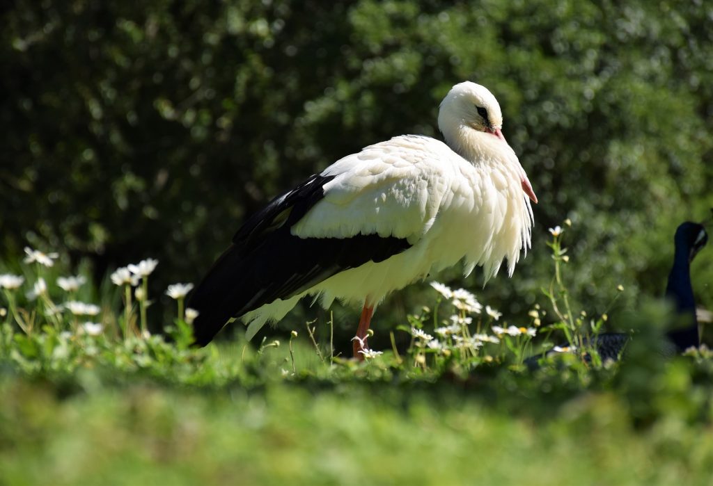 Reproduction : Les couples de cigognes peuvent se réunir pour la reproduction ou nidifier seuls. Elles bâtissent un nid dans un arbre ou sur le toit d’une construction humaine. Ce nid est constitué de branches auxquelles la cigogne rajoute de la terre, du fumier, du gazon, des brindilles, de l’herbe et parfois du papier et des chiffons; il accueille souvent 4 œufs que les deux parents couvent. L’envol des jeunes a lieu après 58 à 64 jours. Les deux parents s’occupent de leurs petits.